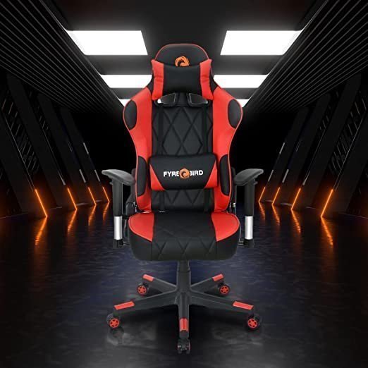 Nilkamal Fyrebird Marvel Ergonomic Gaming Chair with Adjustable Neck, Lumbar Pillow, 3D Adjustable Armrest, Gas Lift Mechanism, & 100mm Tilt (Finish: Black/Red)