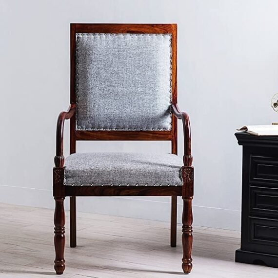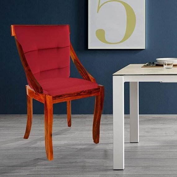 Shilpi Wooden Arm Chair with Cushions(Natural Teak) – Indian Sheesham Wood with Special PU Polish