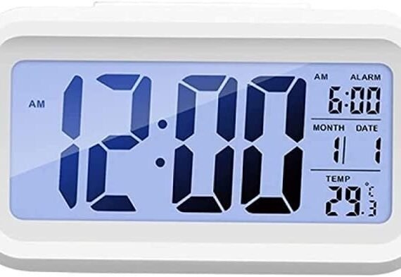 DICTA – Digital Alarm Clock White Smart Back Light Battery Operated Table Clock with Automatic Sensor