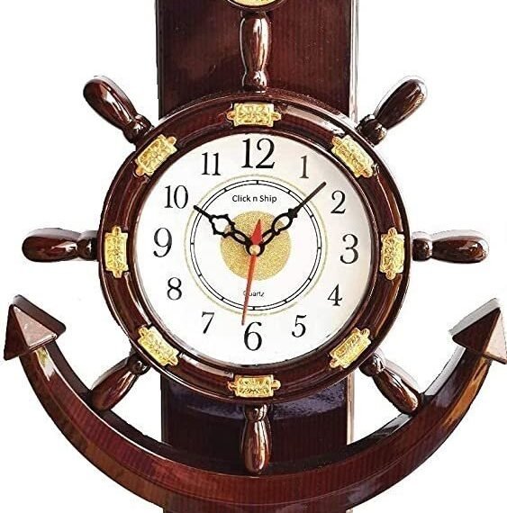 Click n ship Pendulum Plastic Wall Clock for Home (Size 36cm 27cm 7cm) (Brown, Small) (Brown)