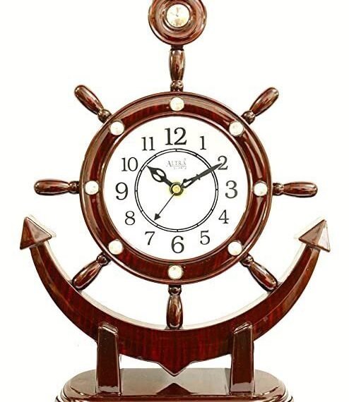E-DEAL Plastic Antique Look Abstract Analogue Table Clock (Brown)
