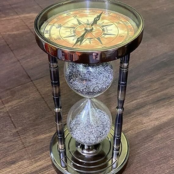 Handmade Antique Brass Compass Hourglass Nautical Maritime Old Sand Clock Timer