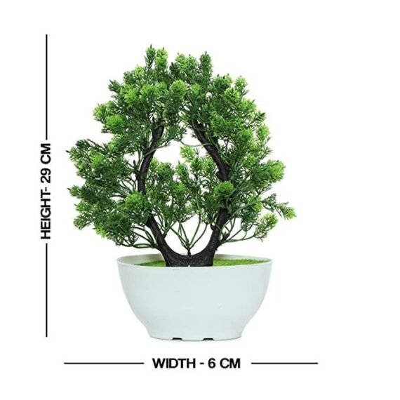 Anaaya Creations Artificial Bonsai Plants with White Pot Round Shape Artificial Plants for Home & Office Table Decoration (Size – 29 x 6 Cm, Color – Green)