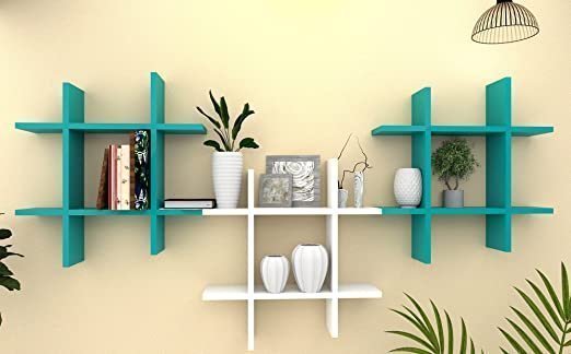 AMAZE SHOPPEE Exclusive Designed Hashtag Floating Wall Mount Shelf Display Shelves Storage Organizer for Wall Decoration of Your Home, Living Room, Bed Room, Office (Pack of 3, Turquoise & White)