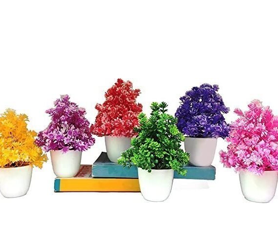 AKP Artificial Plants with Pot for Home Decoration Small Size ( Pack of 6 ) (Round Pot)