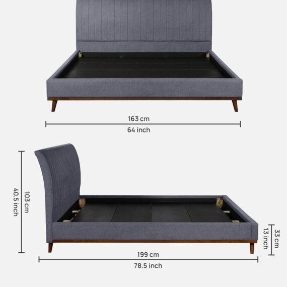 Alonso Upholstered Queen Size Bed in Dark Grey Colour