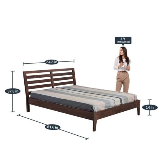Josefa Queen Size Bed with Storage in Natural Teak Wood Finish
