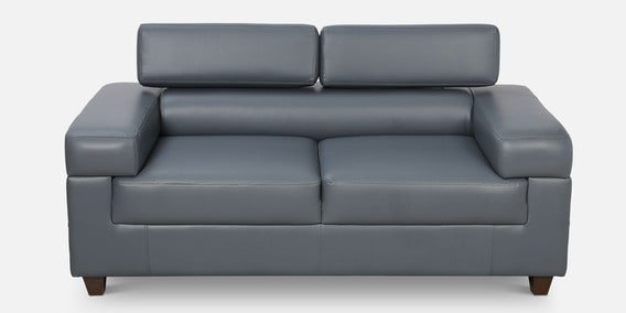 Jefren 2 Seater Leatherette Sofa With Adjustable Headrest In Grey Colour