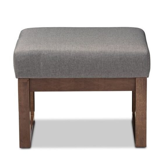 Baxton Studio Roxy Mid-Century Modern Walnut Wood Finishing and Grey Fabric Upholstered Ottoman