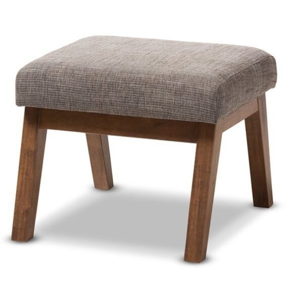 Baxton Studio Aberdeen Mid-Century Modern Walnut Wood Finishing and Gravel Fabric Upholstered Ottoman