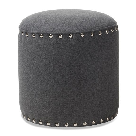 Baxton Studio Rosine Modern and Contemporary Dark Grey Fabric Upholstered Nail Trim Ottoman