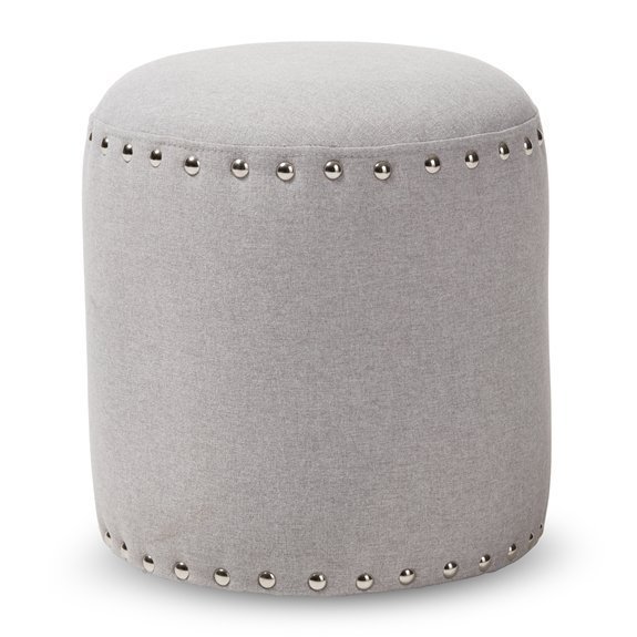 Baxton Studio Rosine Modern and Contemporary Light Grey Fabric Upholstered Nail Trim Ottoman
