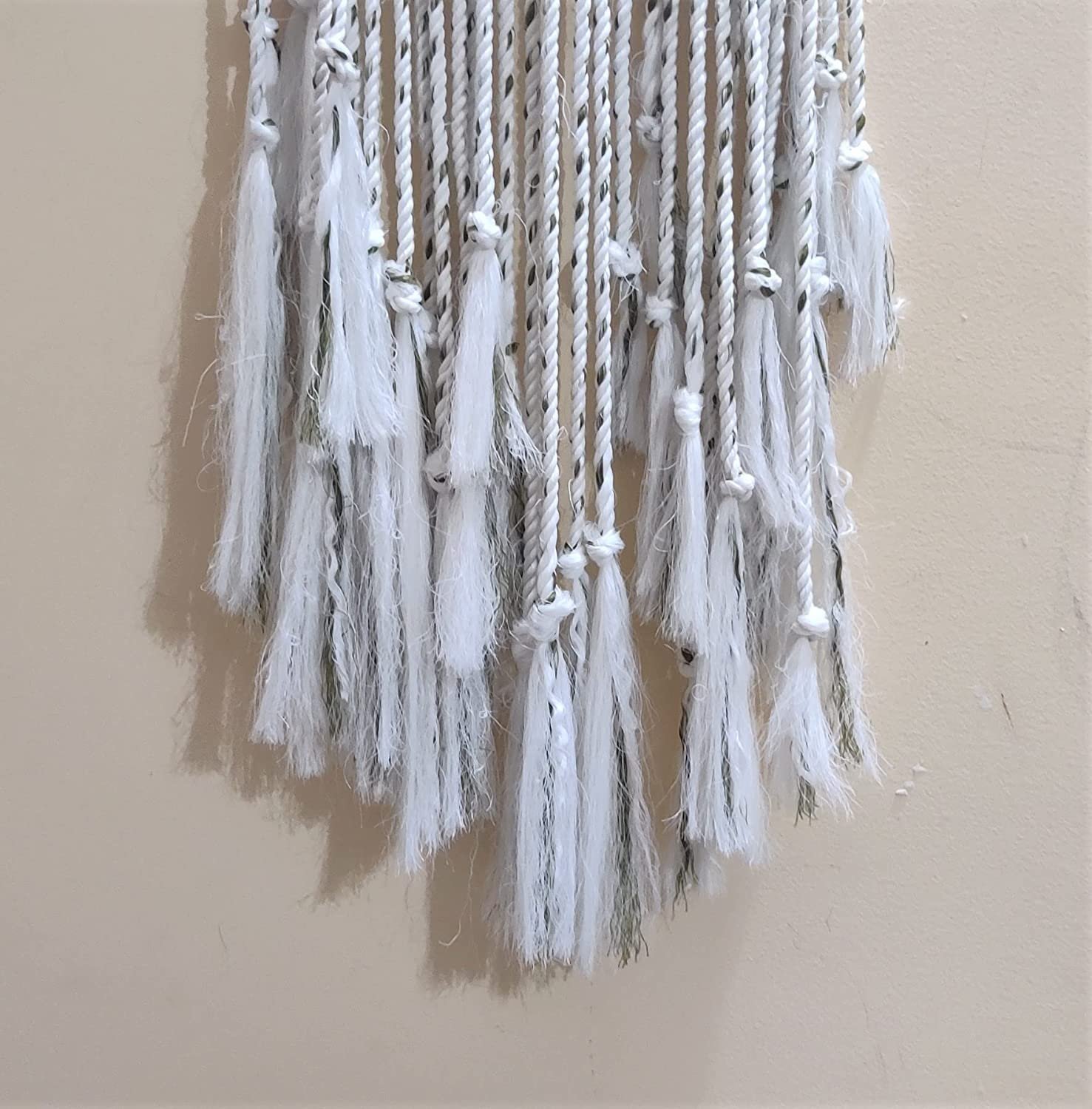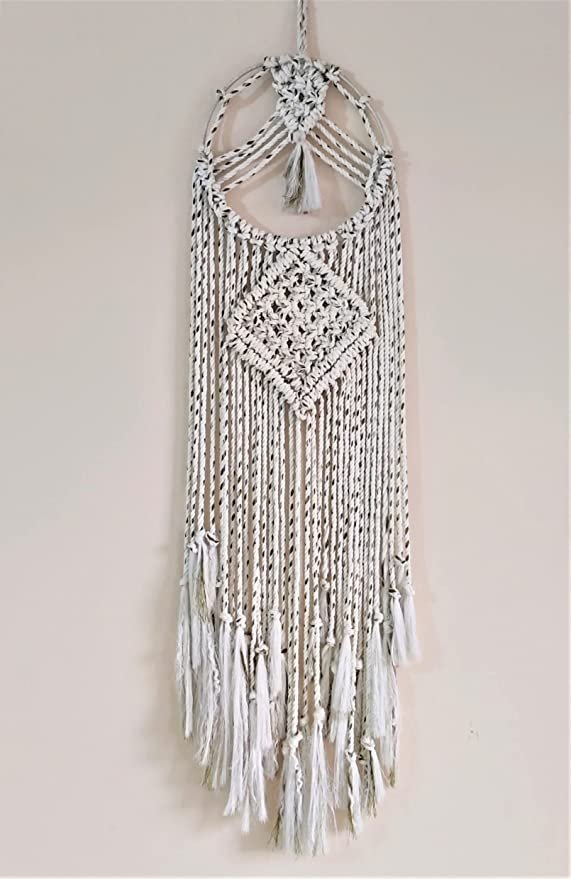 Kasba Cotton Wall Hanging for livingroom Decoration | Bohemian Geometric Theme | Cotton Dream Catcher | Bohemian Wall Decor | Handmade (3 feet, White with Green Lines)
