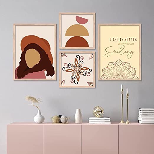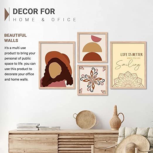 KOTART Modern Wall Paintings with Frame for Home Decoration – Painting for Living Room Bedroom Home – Framed Wall Hangings ( 10.5 x 13.5 inch, Multicolor ) Set of 4 (Beige)