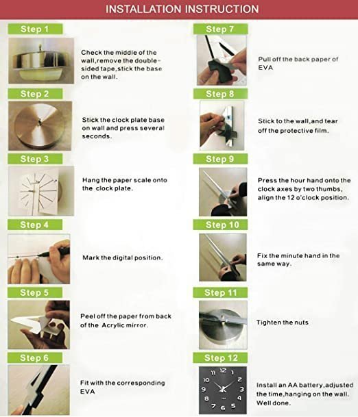 Color Name: BlacknnBlack n₹854.00nn nnBrown n₹901.00nn nnGold n₹901.00nn nnRadium n₹1,044.00nn nnSilver n₹759.00nnBrand KurtzynColour BlacknDisplay Type AnalognStyle ClassicnProduct Dimensions 80W x 80H CentimetersnItem Shape RoundnMaterial 1. Number : EVA Foam with Acrylic Mirror Surface 2. Hour & Minute Hand : MetalnTheme AbstractnFrame Material Metal, Plastic, Acrylic, GlassnAre Batteries Included No