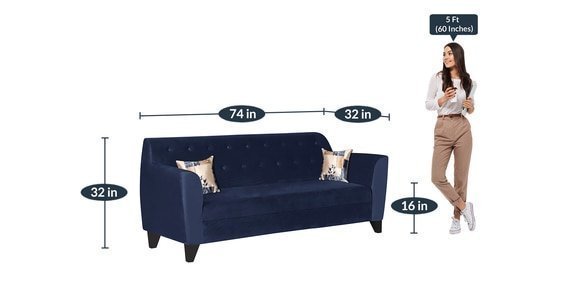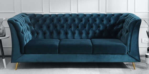 Azalea 3 Seater Velvet Sofa In Teal Blue Colour