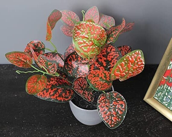 Elemntl Artificial Plant in Grey Pot for Home Decor | Decoration Items for Living Room | Decorative Table Top Indoor Plants Bonsai for Office Desks & Counters (Red Polka Dotted Plant in Grey Pot)