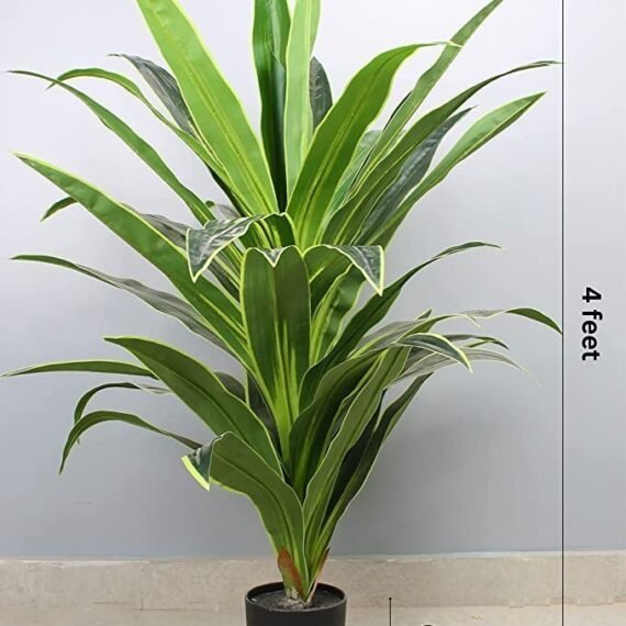 Elemntl Artificial Large Floor Plant with Plastic Pot for Home Decor (Height: 4 feet) | Decoration Items for Living Room | Decorative Table Top Indoor Plants Bonsai for Office (Dragon Plant 4 feet)