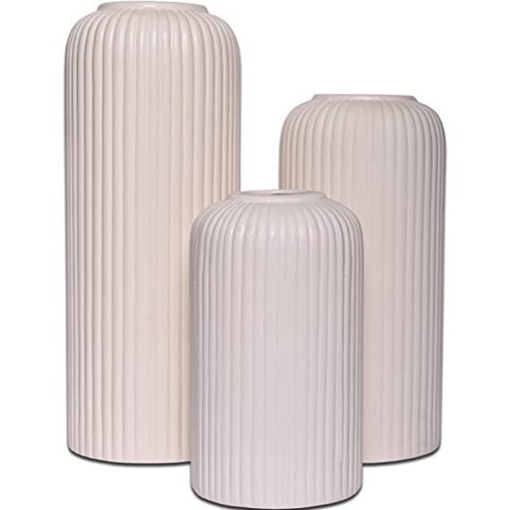 KREATIVE ART’S Modern Ceramic Flower Vase for Living Room, Flower Pots for Home Decoration , Home Decor, White Vase (Set of 3PCS, Off White)