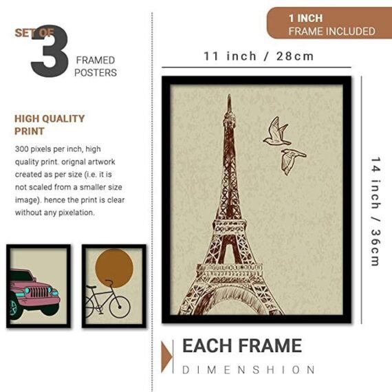 KOTART Modern Wall Art Framed Painting for Wall Decoration – Wall Paintings for Living Room, Bedroom Combo50 (Black, Framed) Set of 3